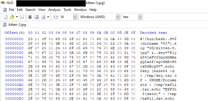Skriptet är uppdelat i tre delar kan man väl säga. Först så öppnar den kitten-9.jpg, mest troligt för att allt ska se ut som vanligt för användaren.